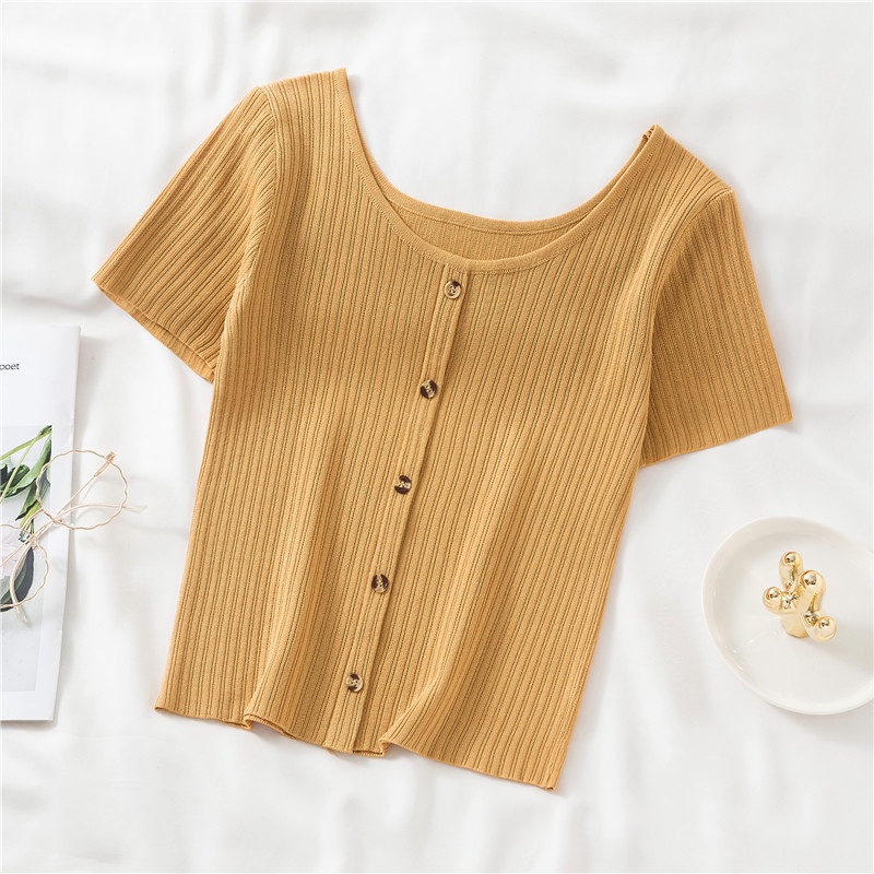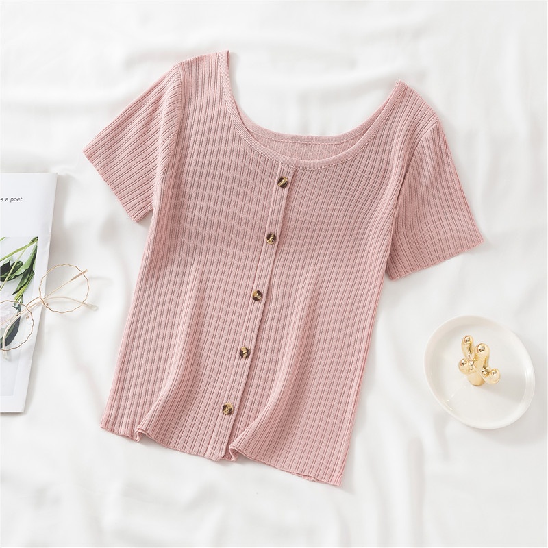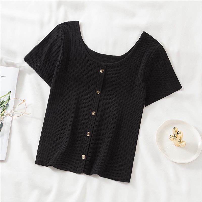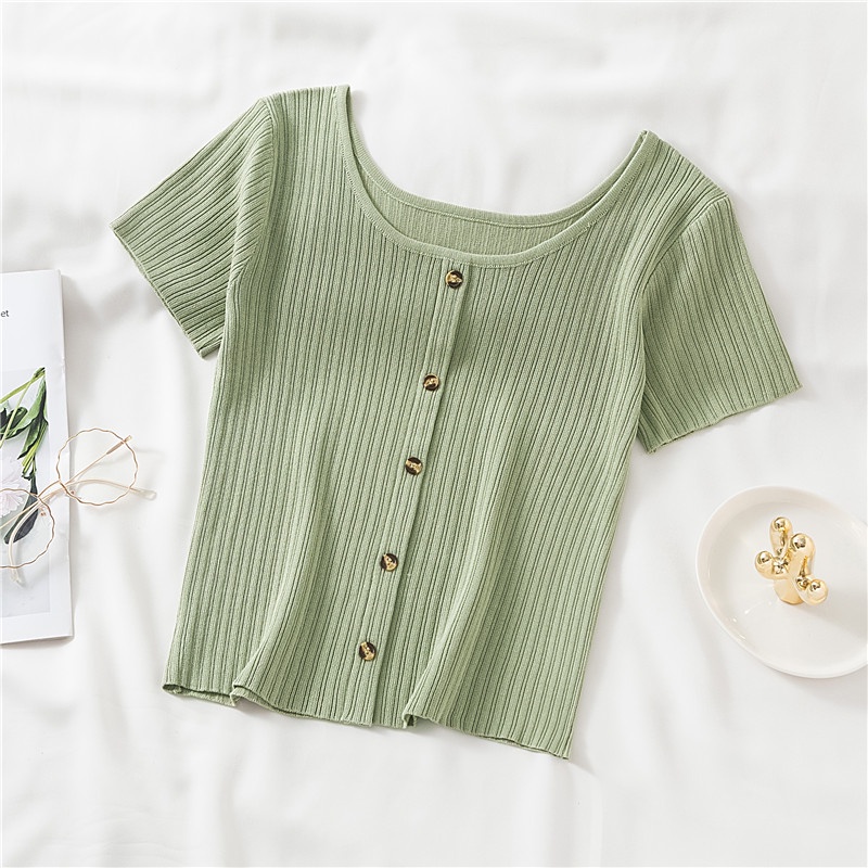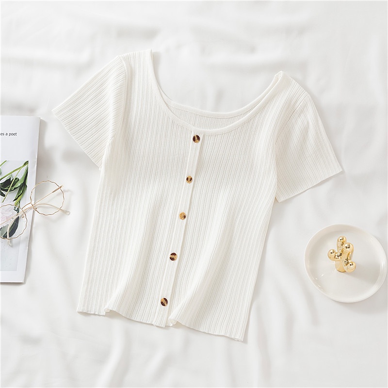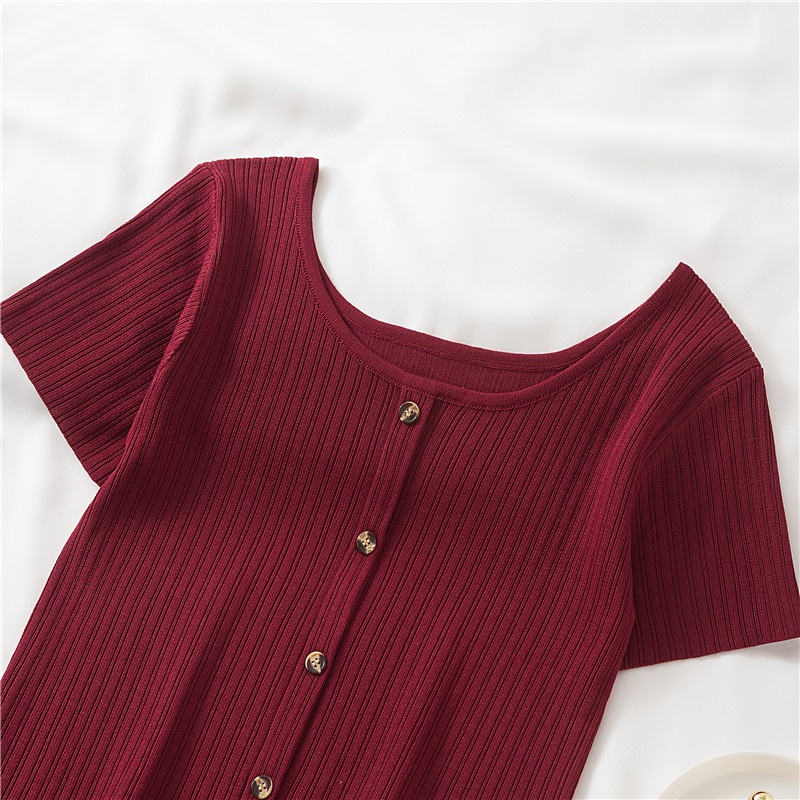 Retro Round Neck Short Sleeve T-Shirt Women's Shirt Slim Tops