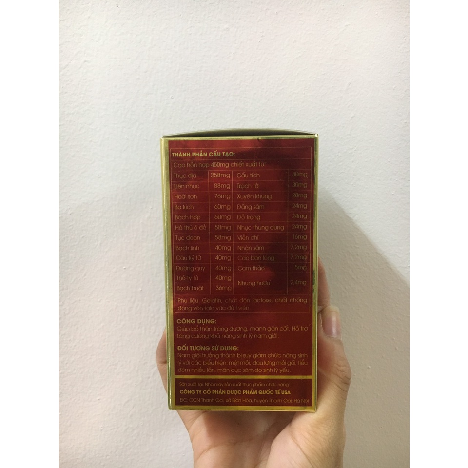 Sâm nhung tăng cường sinh lý Bổ Thận Nam giảm xuất tinh sớm-Hộp 30 Viên