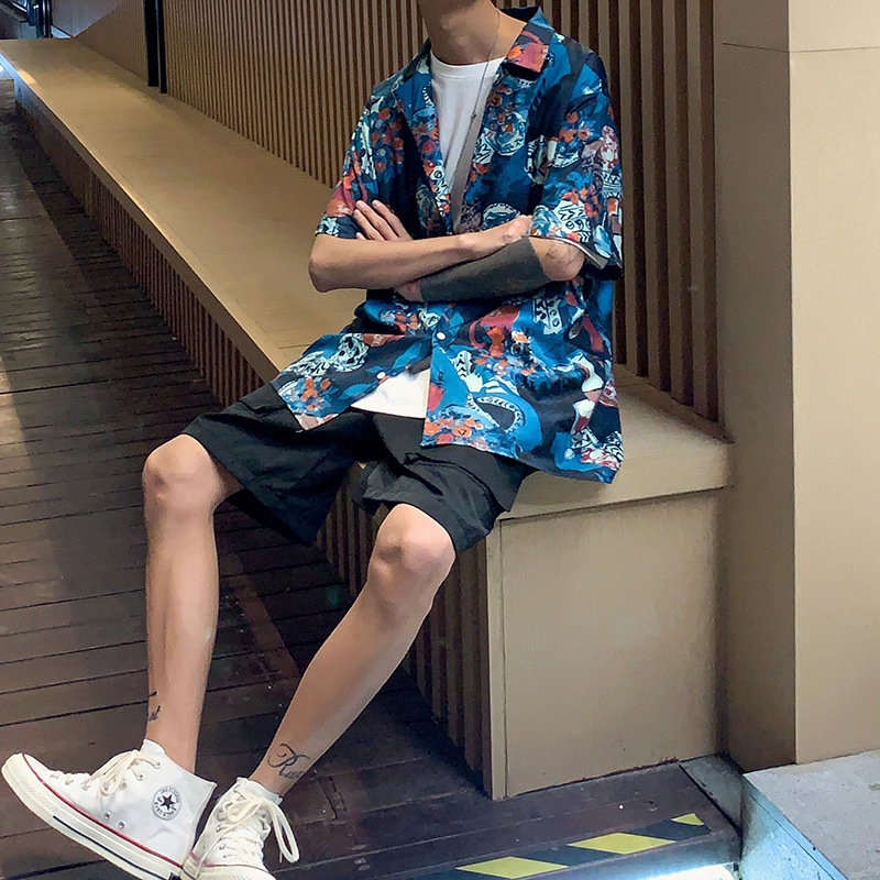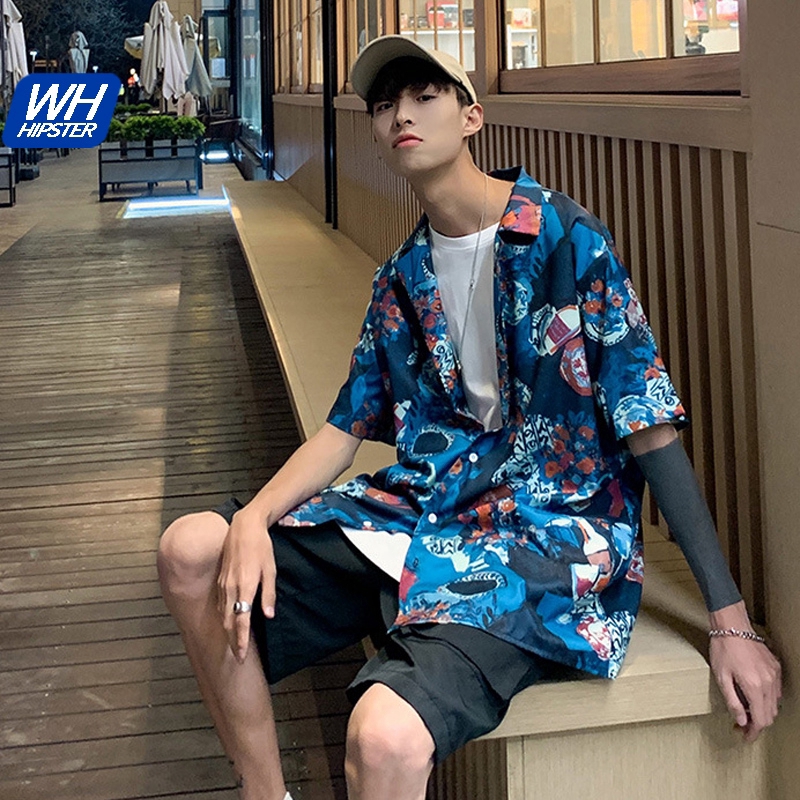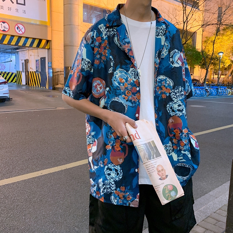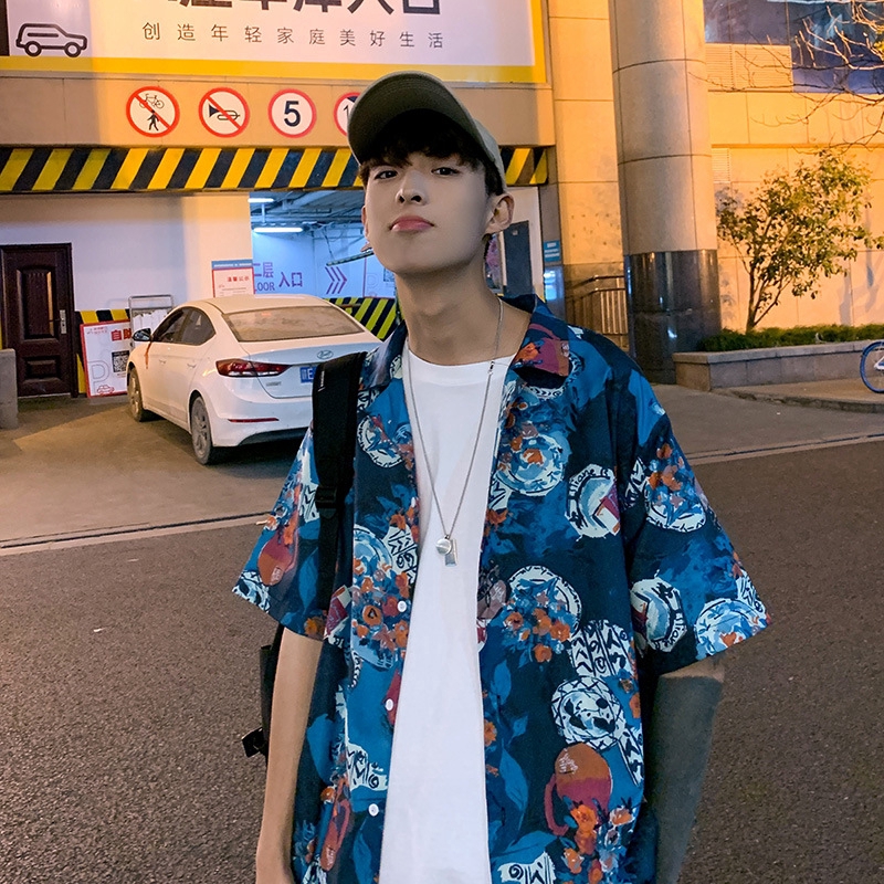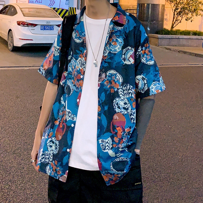 Áo sơ mi nam ngắn tay họa tiết hoa văn Hawaii