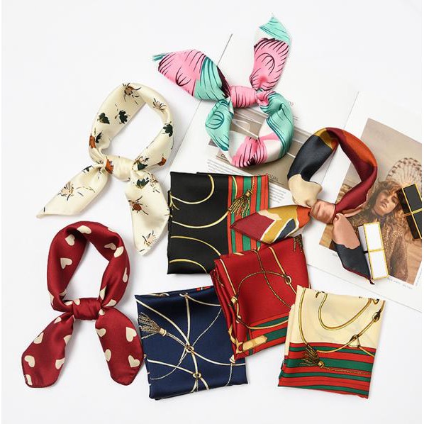Khăn lụa vuông 50x50- Khăn turban badana quàng cổ quấn tóc quấn túi xách xinh