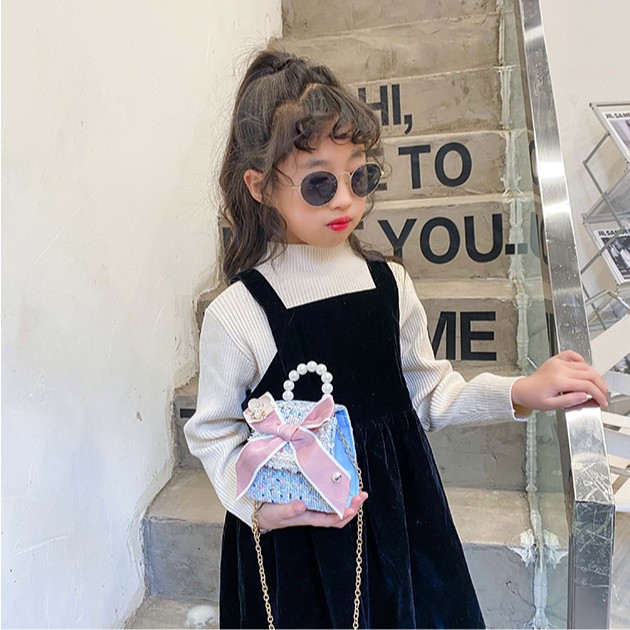Túi đeo chéo đính ngọc trai nhân tạo thời trang cho bé