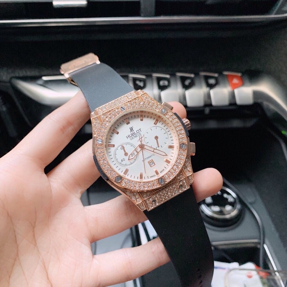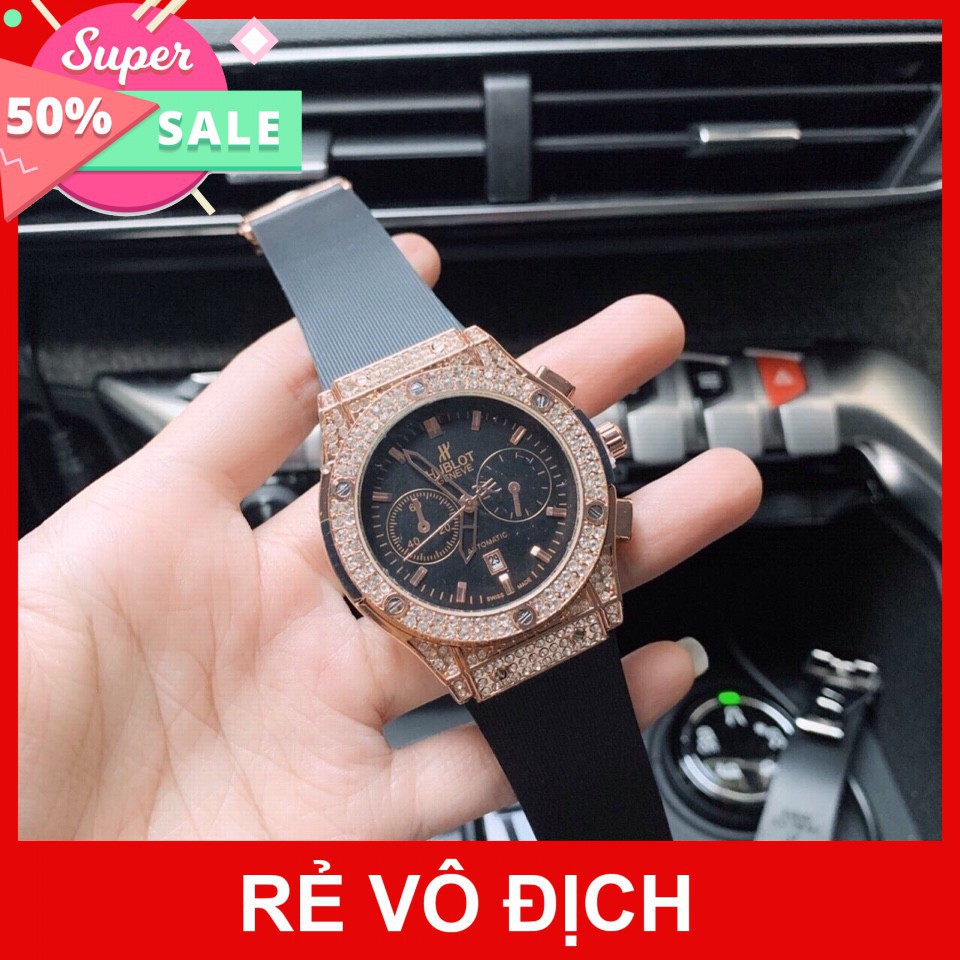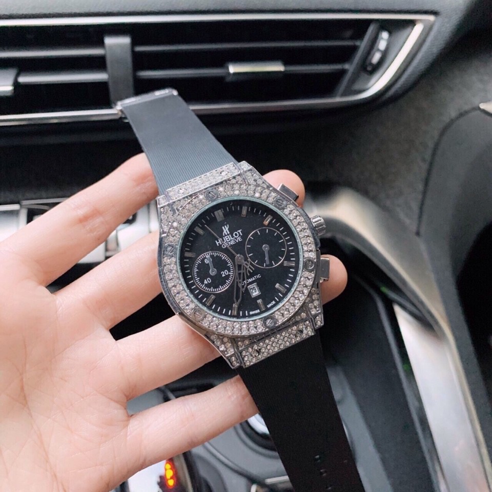 (Hublot hương vani) Đồng hồ Nam Hublot -42mm đính đá hàng cao cấp - Bảo hành 12 tháng