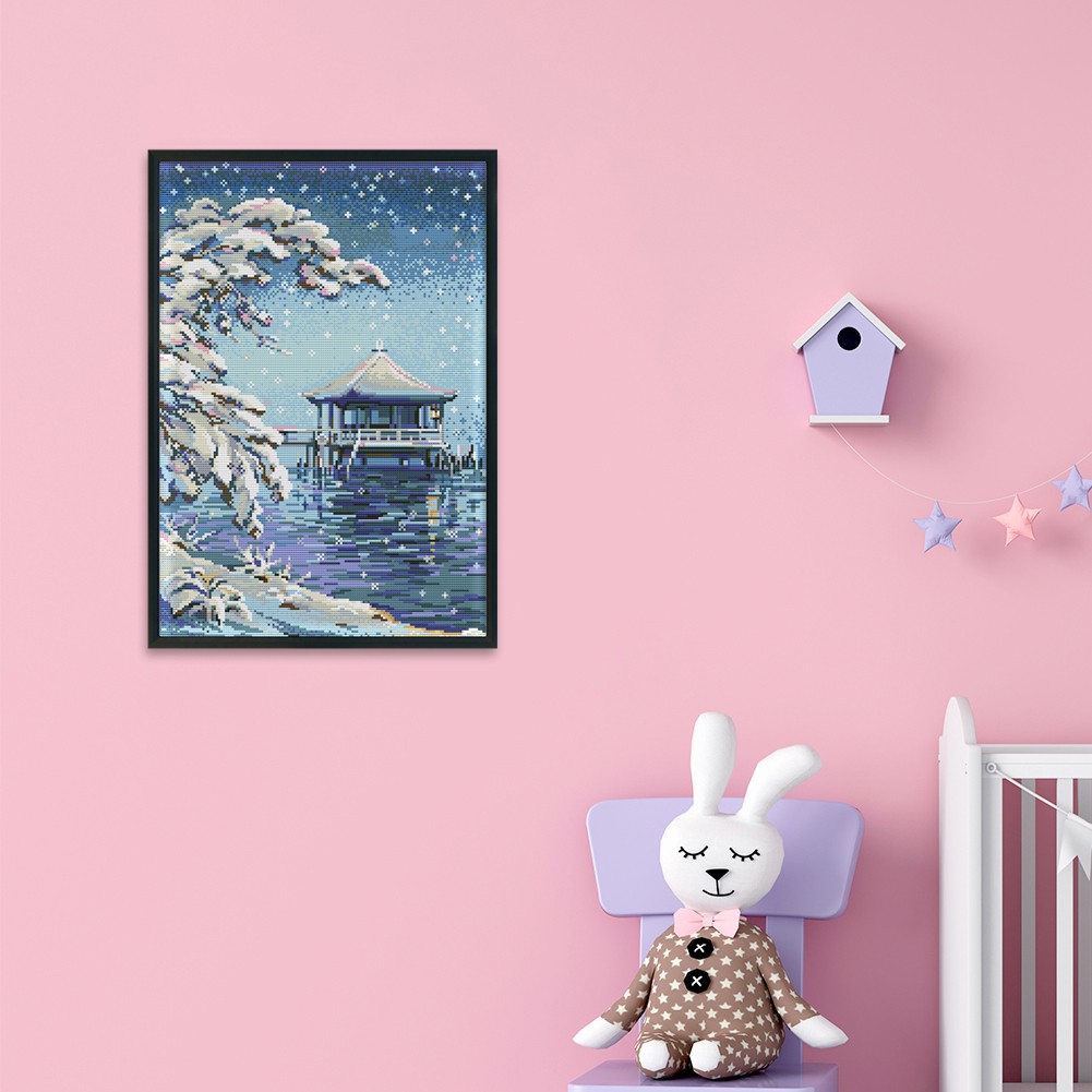 Tranh Đính Đá 5D DIY Hình Phong Cảnh Ven Sông Treo Tường Trang Trí