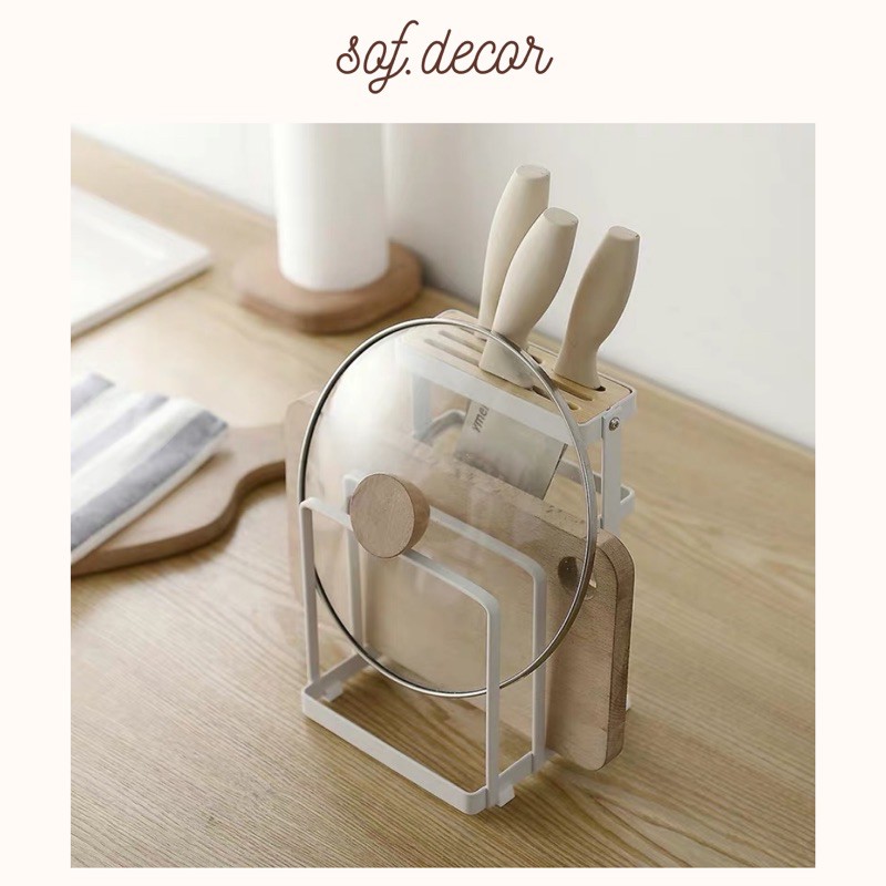 Giá sắt đựng dao, thớt, nắp vung kiểu Hàn - Décor nhà Sò