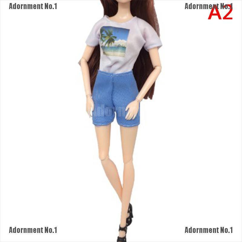 Set áo thun ngắn tay cổ tròn + Quần short đáng yêu cho búp bê