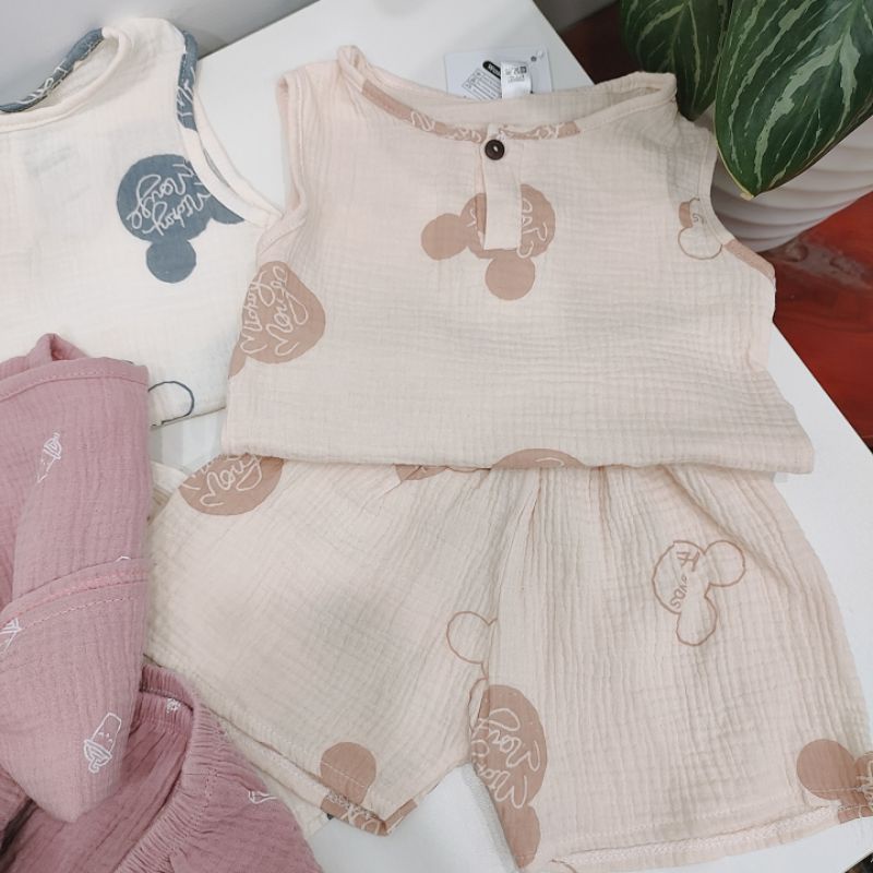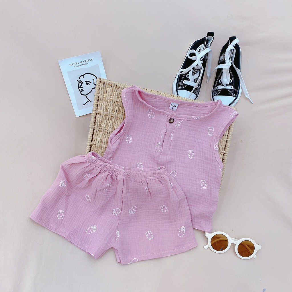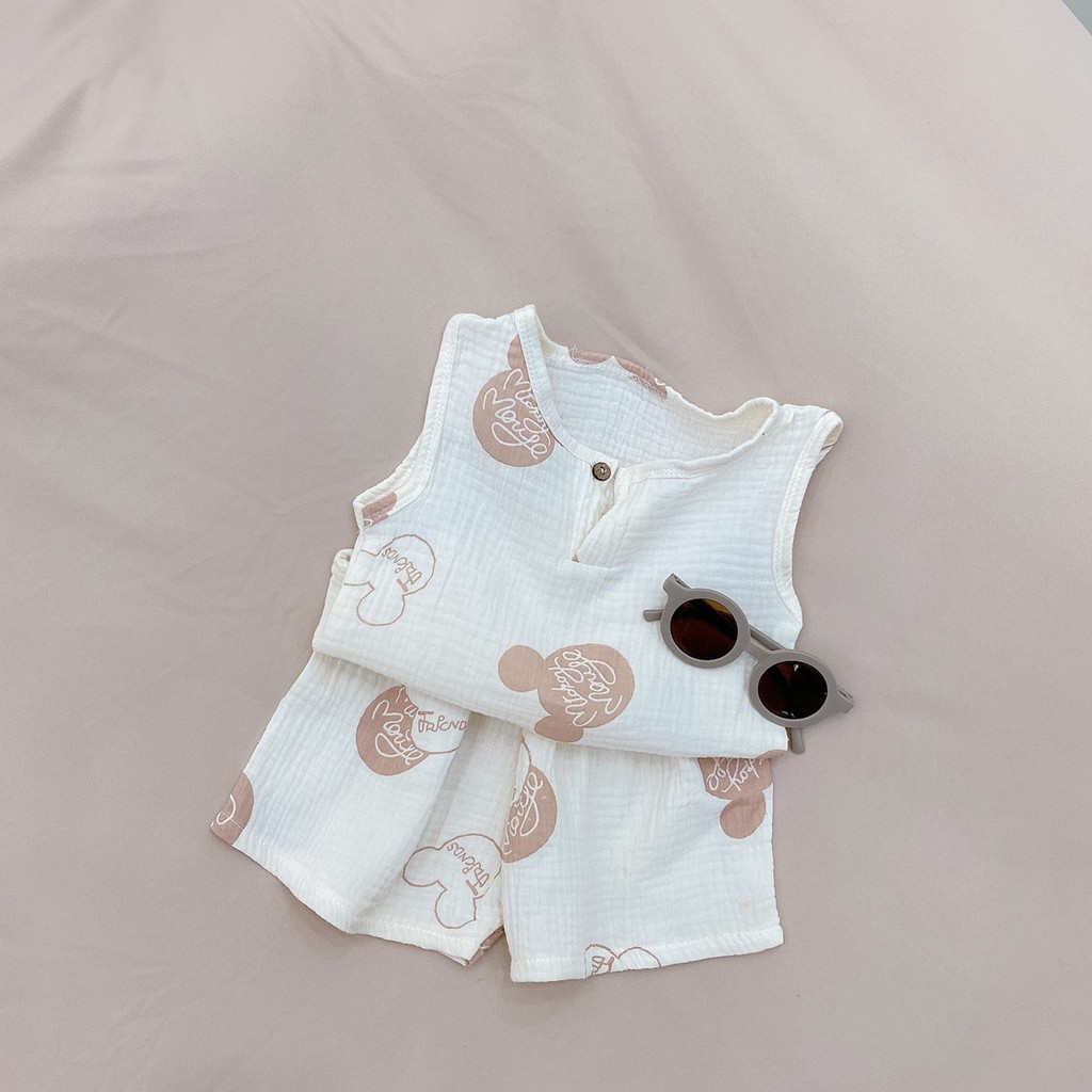 [Hàng May Kỹ] Bộ ba lỗ bé trai bé gái chất xô muslin mềm mát cho bé