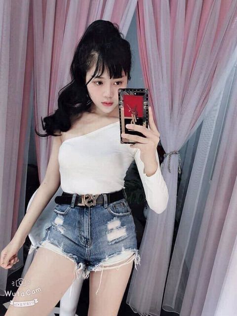 áo lệch vai tay dài ( thun lụa)