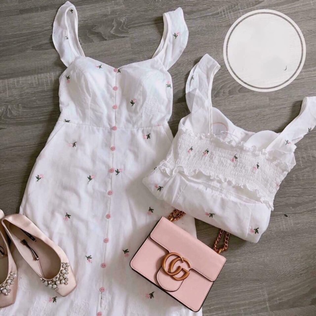 [Hàng order] Váy cổ vuông tay ngắn thêu hoa nhí trẻ trung ( kèm ảnh thật)