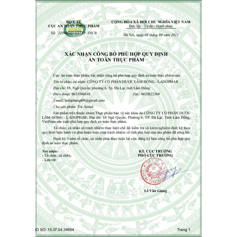 Actisô túi 100 Túi, Trà Actisô túi 100