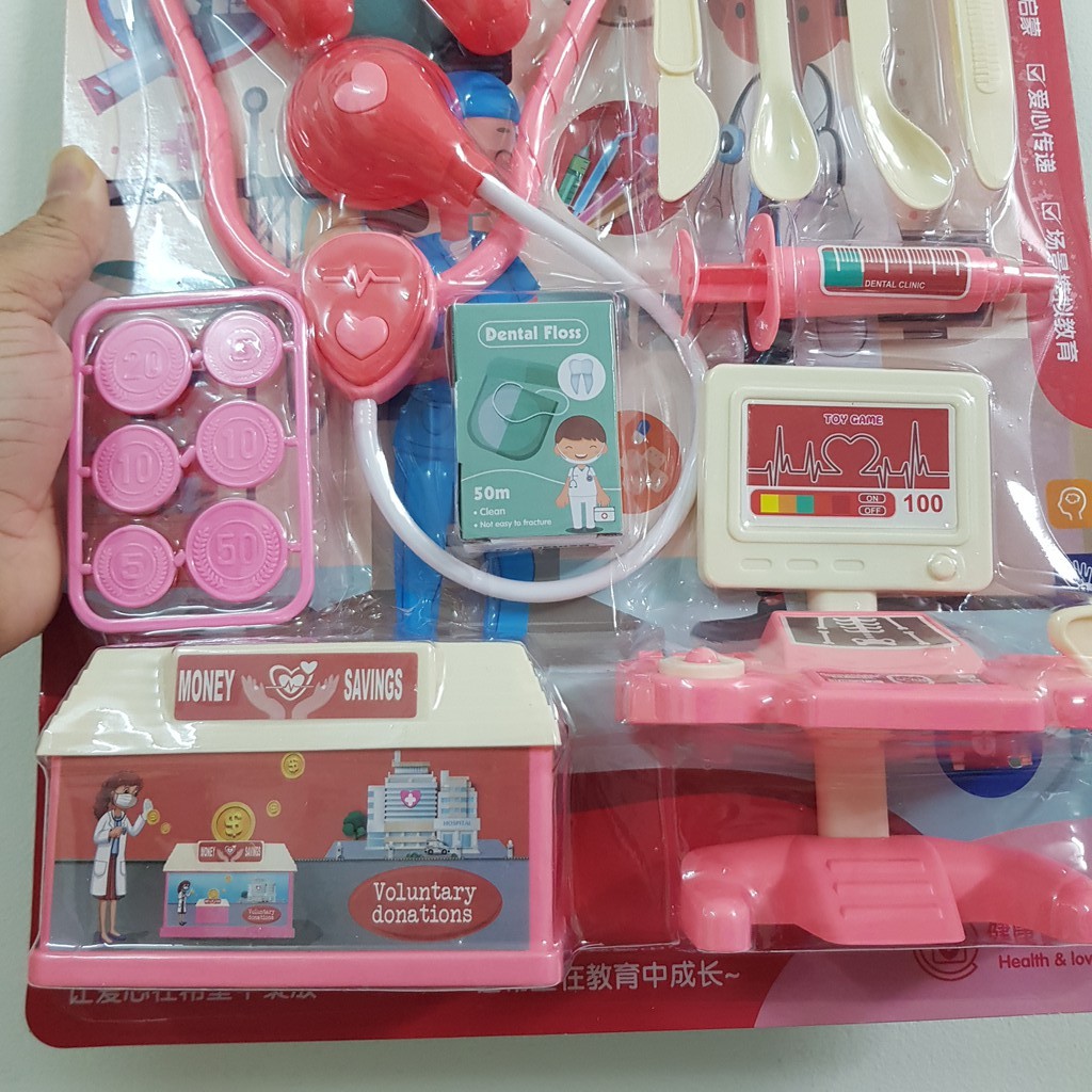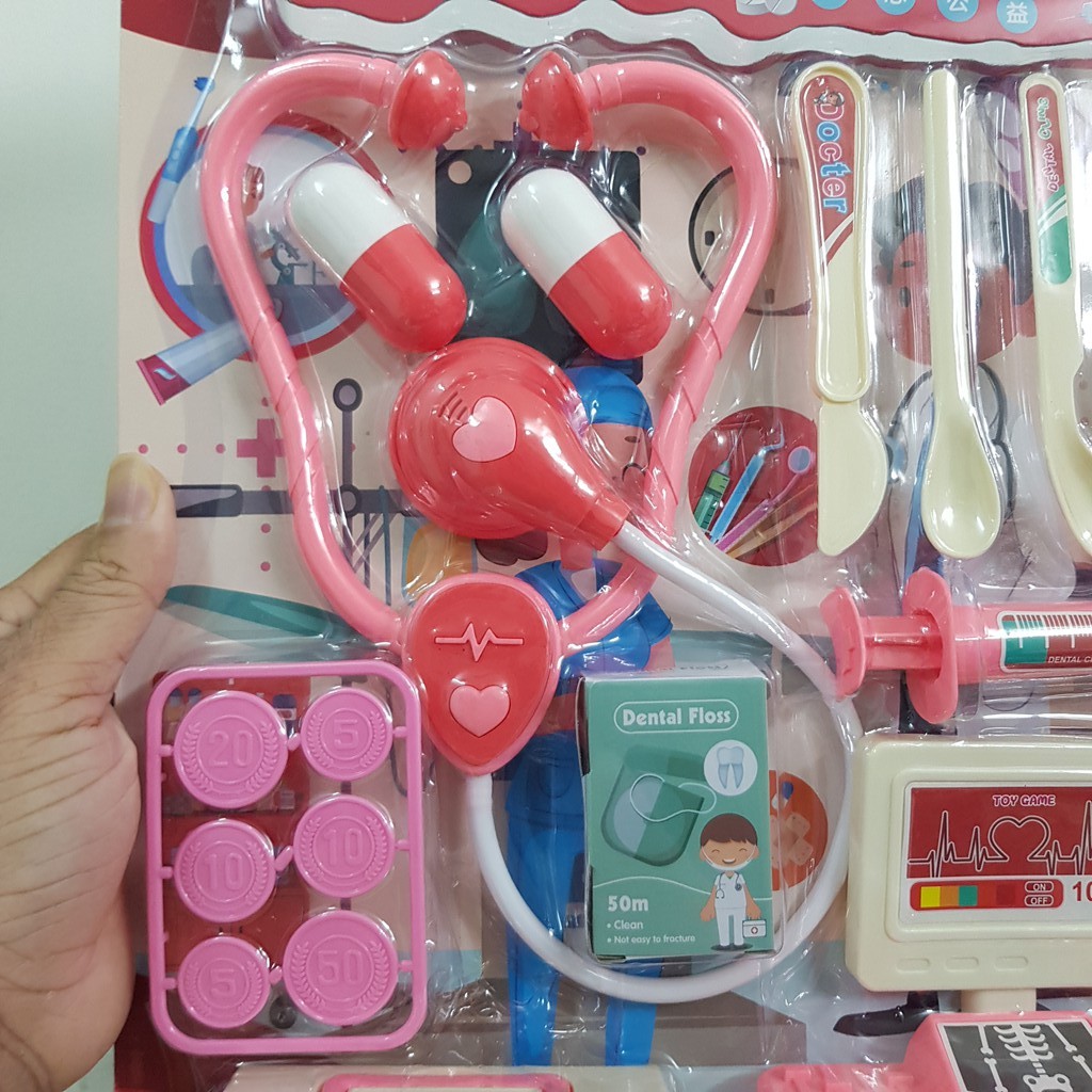 [Mã 11LSSALE giảm 100% đơn 50k] Hộp đồ chơi bác sĩ gồm 16 món màu hồng cho bé gái, bộ đồ chơi bác sỹ