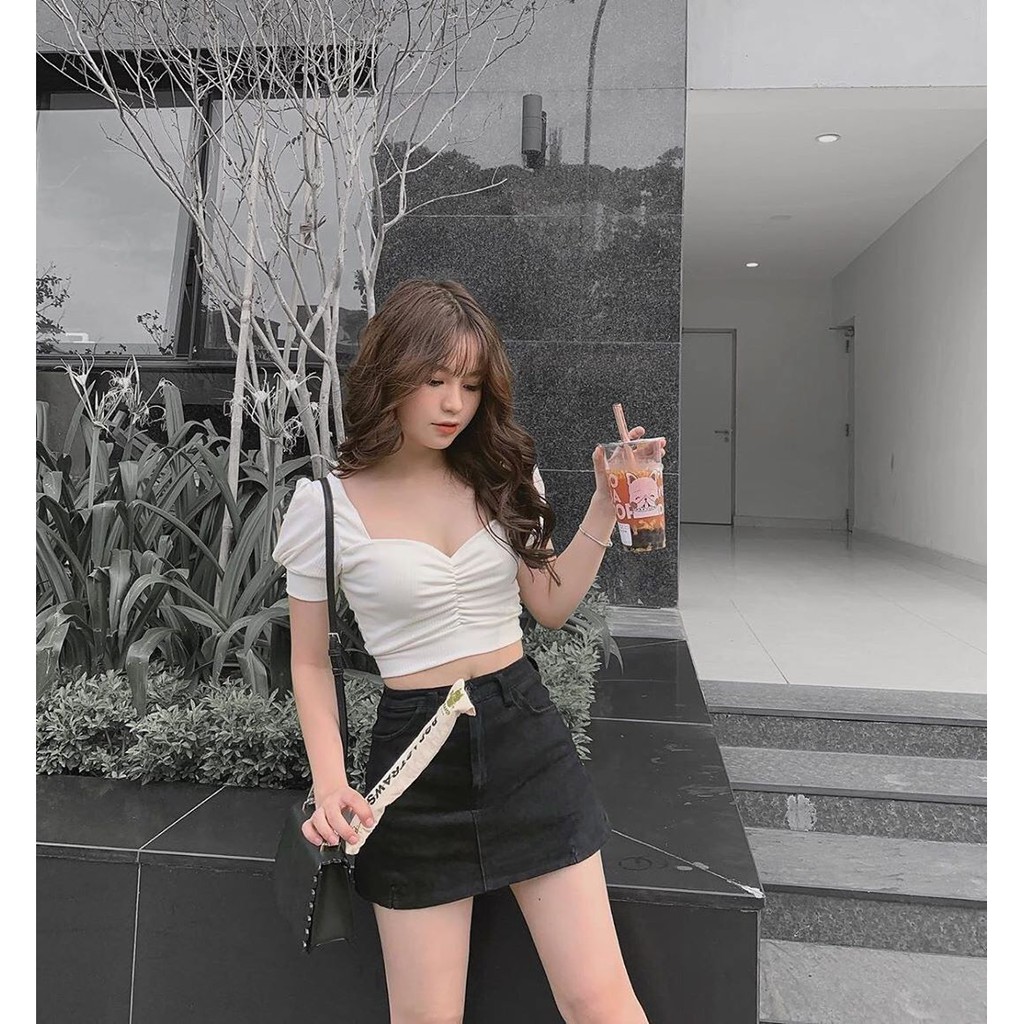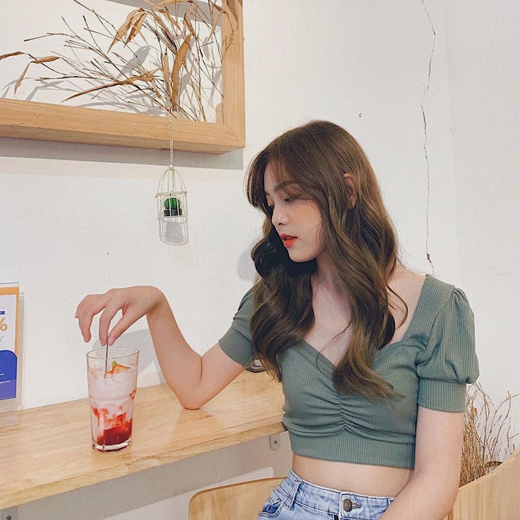 Áo Croptop Nhún Ngực, Tay Phồng