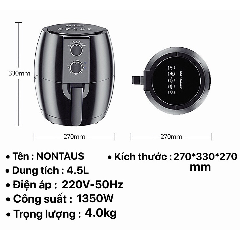 Nồi Chiên Không Dầu Hãng Nontaus loại 4,5L , Nồi Chiên loại Bao Bì Đỏ Nội Địa