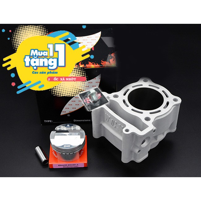 Lòng kiếng YCS 62mm + trái piston nén FJN kiểu 1 dành cho Exciter các đời