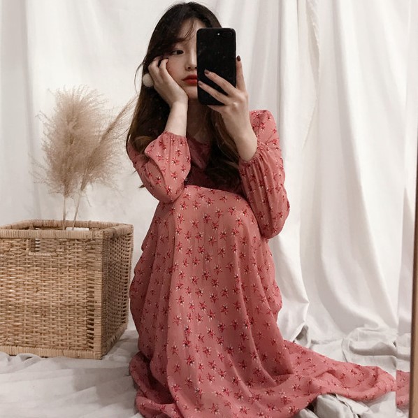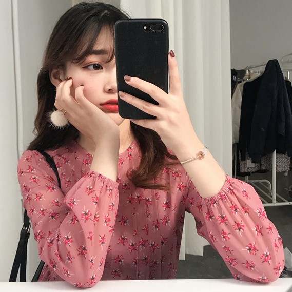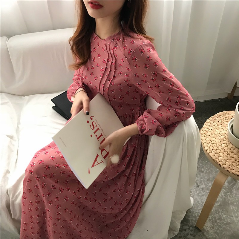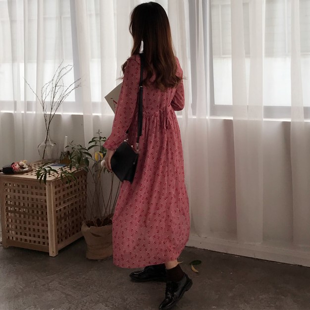 Đầm midi hoa phong, midi hoa phong cách, hoa phong cách Hàn