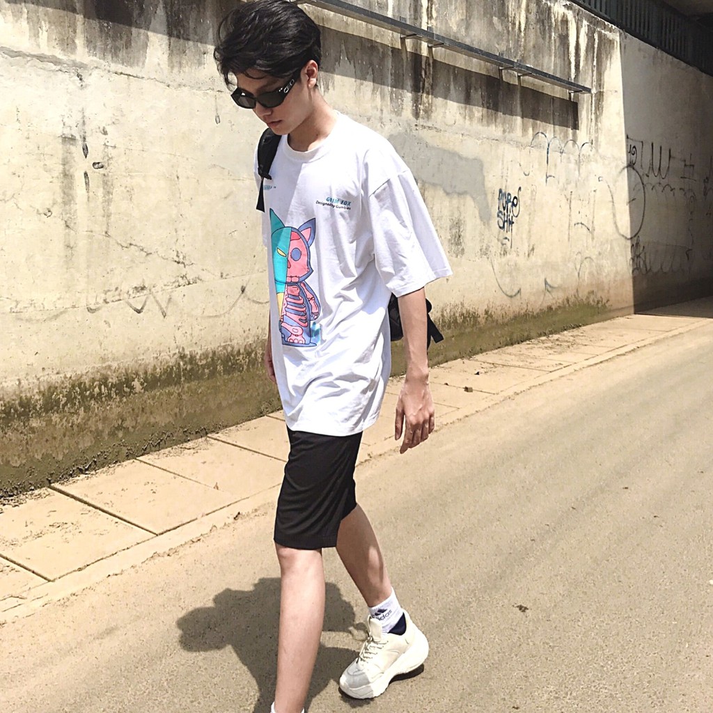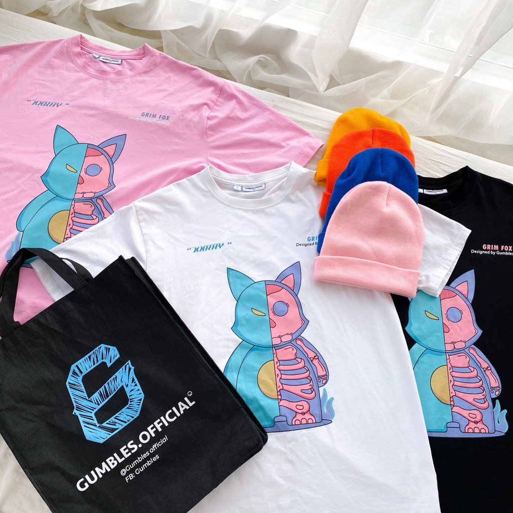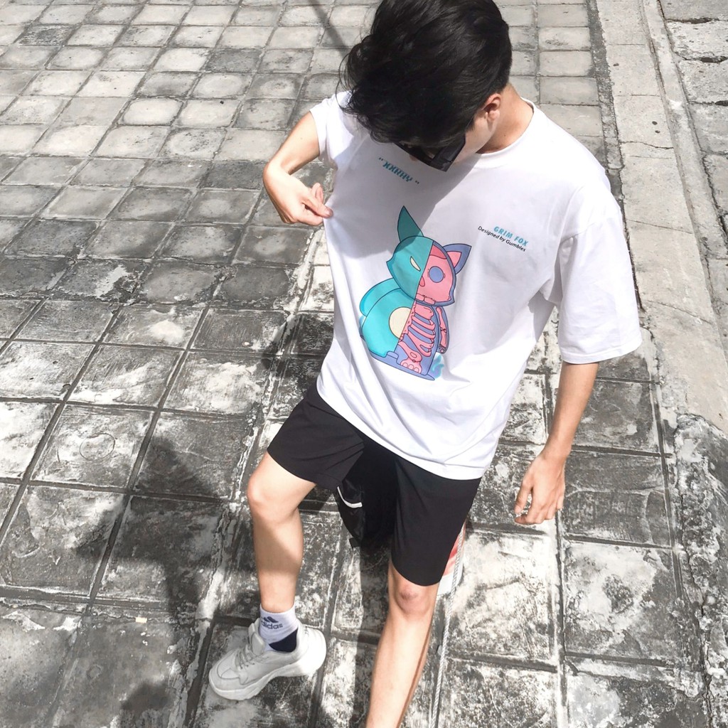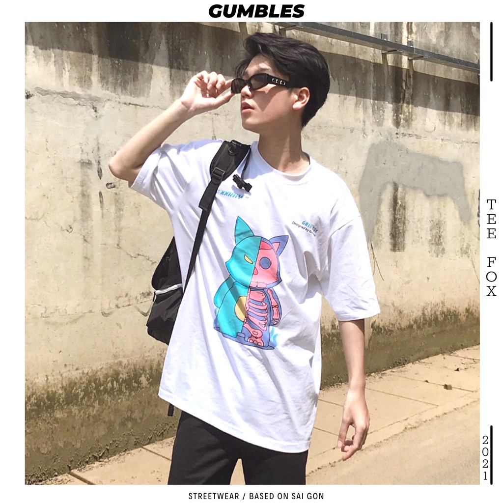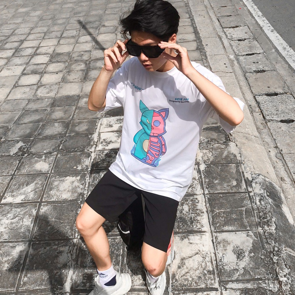 Tee Fox White -, lỡ Grim Tee Fox, Grim Tee Fox White, thun tay lỡ Grim, Áo thun tay lỡ, tay lỡ Grim Tee, Fox White - Gumbles