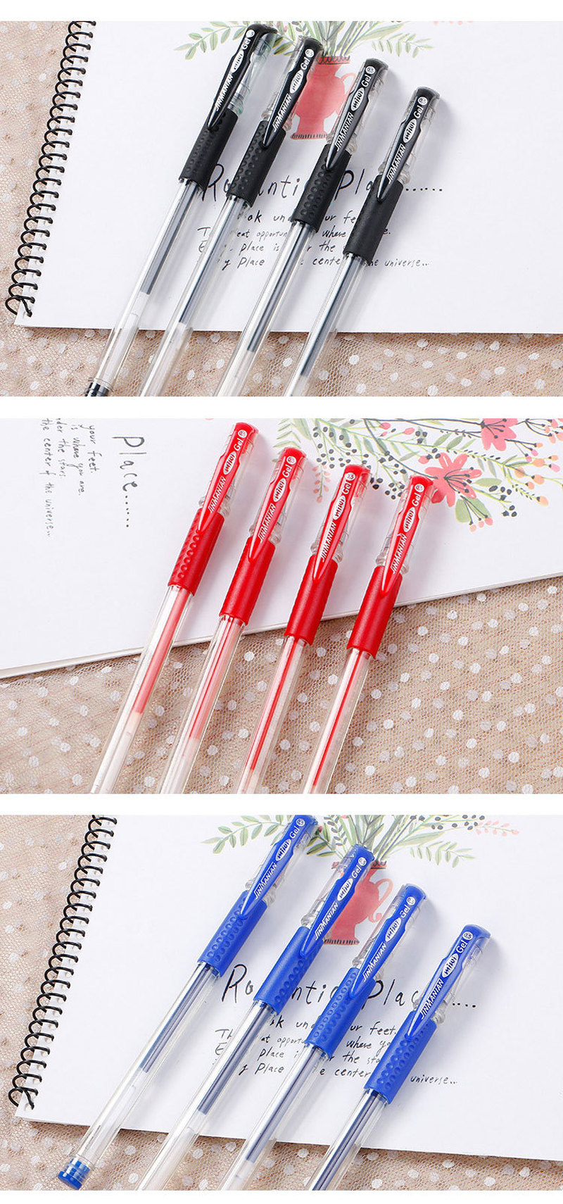 Bộ 4 ruột bút mực gel ngòi 0.38mm/ 0.5mm tùy chọn thay thế tiện lợi