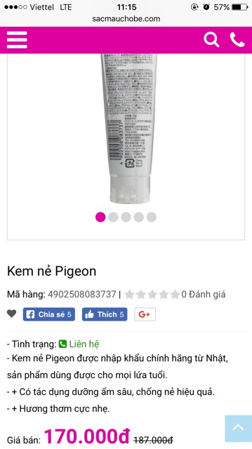 KEM NẺ TRẺ EM PIGEON an toàn cho trẻ, dưỡng ẩm cho bé